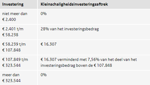 *In dit artikel zijn de Energie-investeringsaftrek (EIA) en Milieu investeringsaftrek (MIA) buiten beschouwing gelaten.